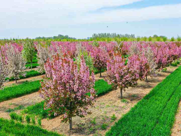 現存33萬株,暢銷品種絢麗海棠近8萬株 地徑8-20cm 分支點0.8-1.2m 涵蓋絢麗海棠、西府海棠、亞當海棠、大葉北美、芭蕾舞美、紅麗等二十余個品種 樹型優美,樹勢健壯,抗逆性強、移栽成活率高 公司儲備二次回剪、精修發帽、斷根移栽數量約8萬株 為公司四季移栽苗木的主要品種之一 也是公司重點培育品種之一